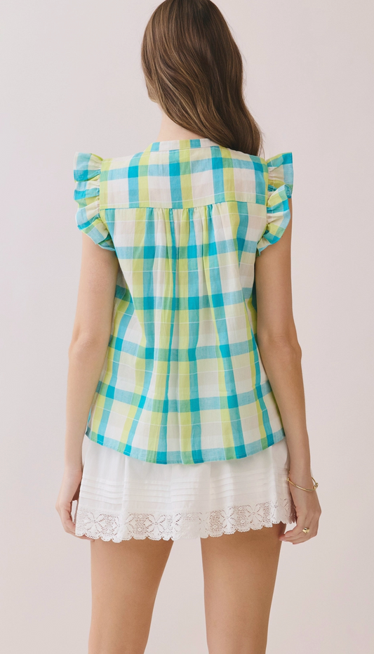 Plaid Ruffled sleeve Top