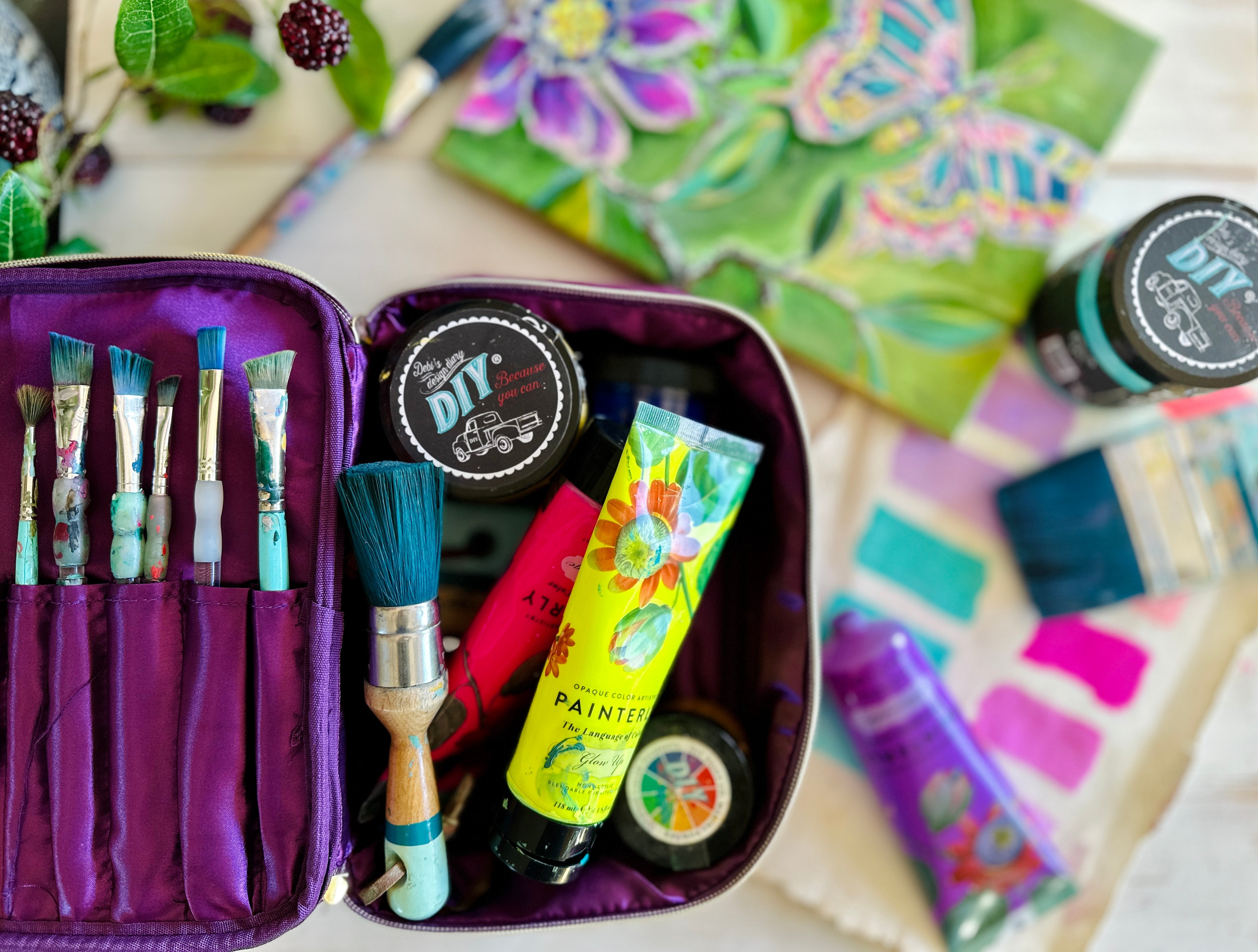 learn to paint this pretty bird with Debi! You will get a fun beautiful box filled with the supplies needed to create a beautiful art bird canvas using DIY Paints, JRV Stencils and Debi's most loved art tools.