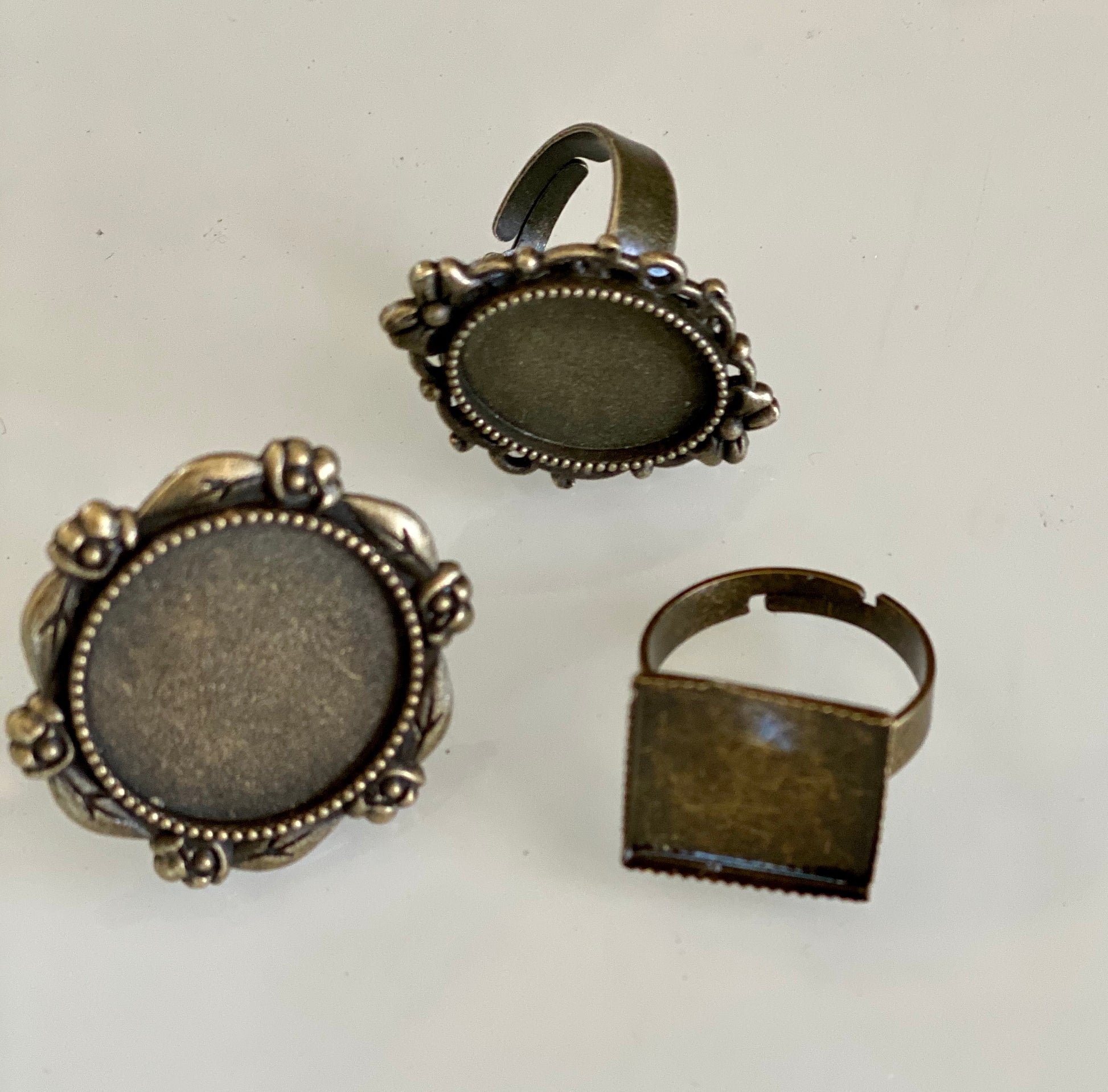 Fun adjustable ring base for DIY projects, paint, add images, charms, moulds, clay, seashells, and create a one of a kind style statement !