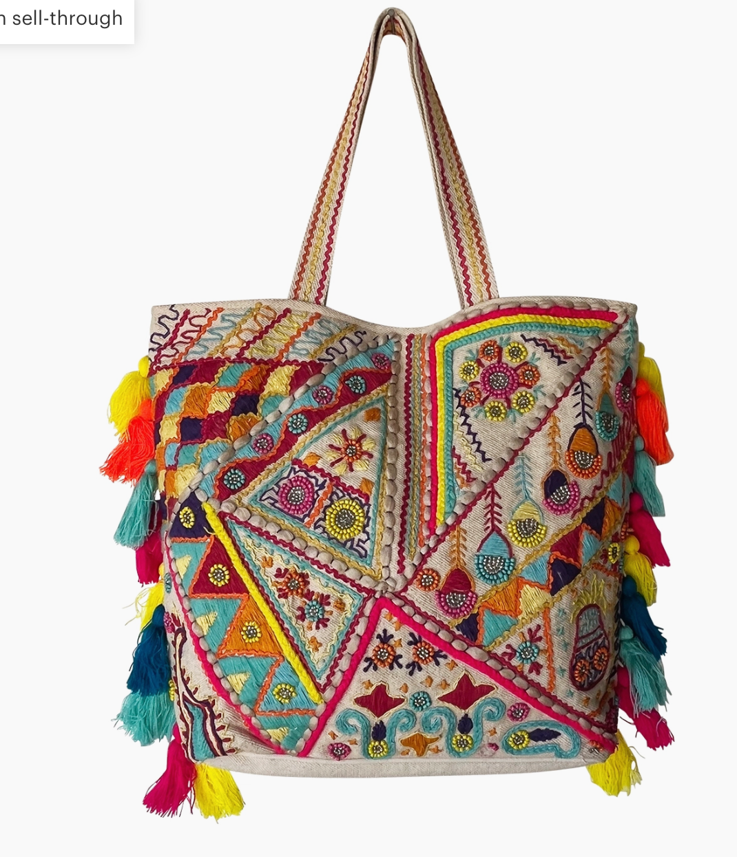 Beaded Yellow Pom Pom Bag is a perfect match for your favorite jeans!!