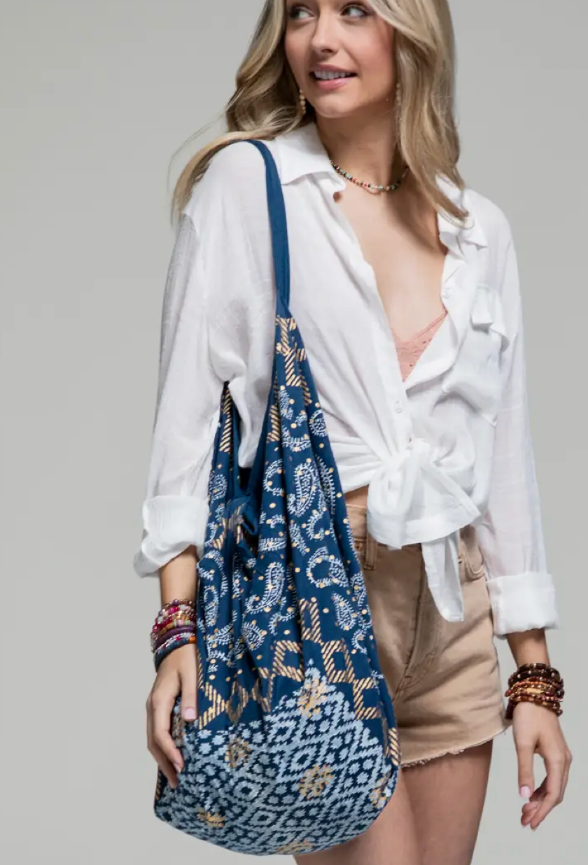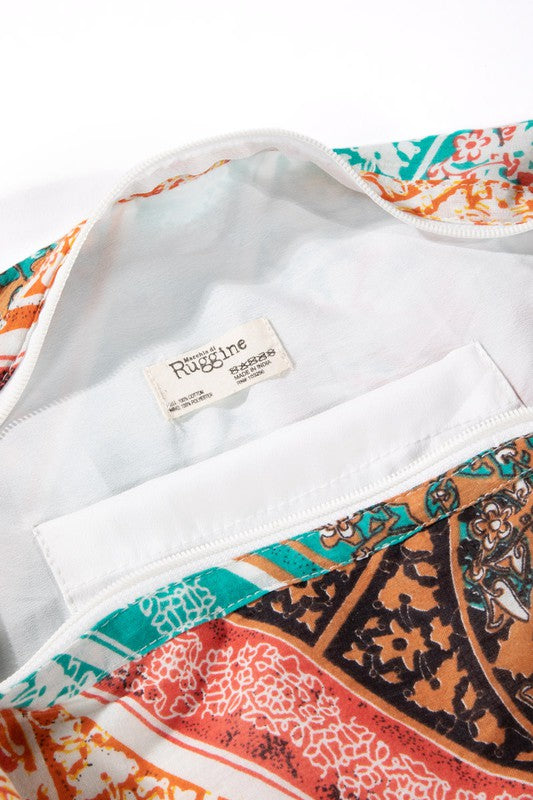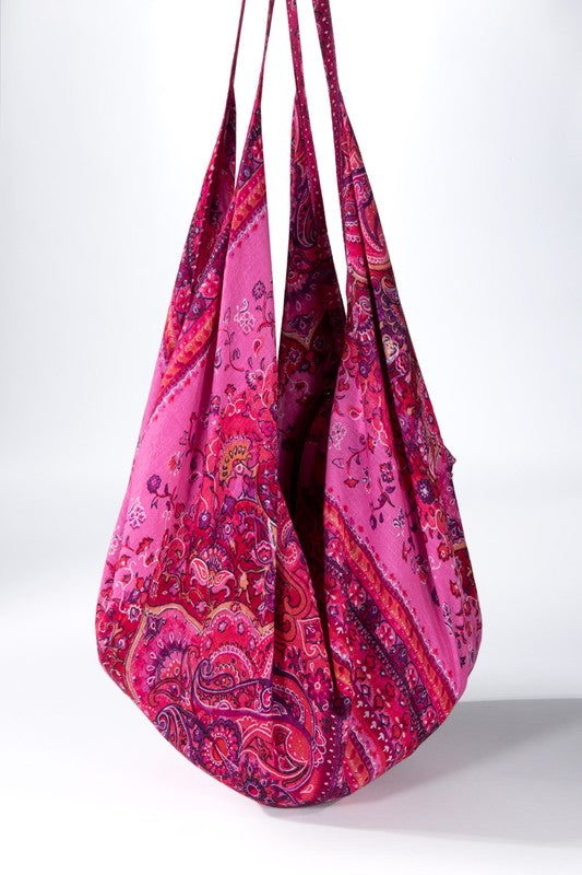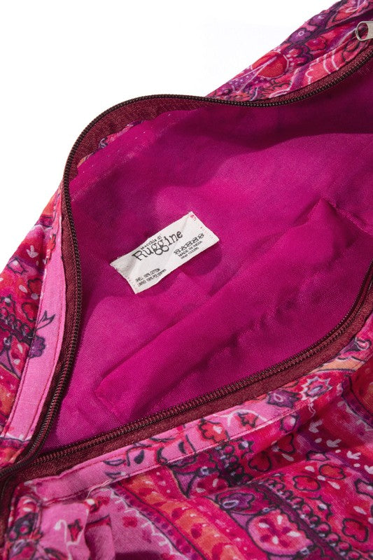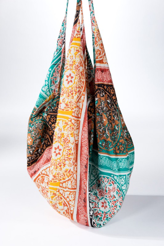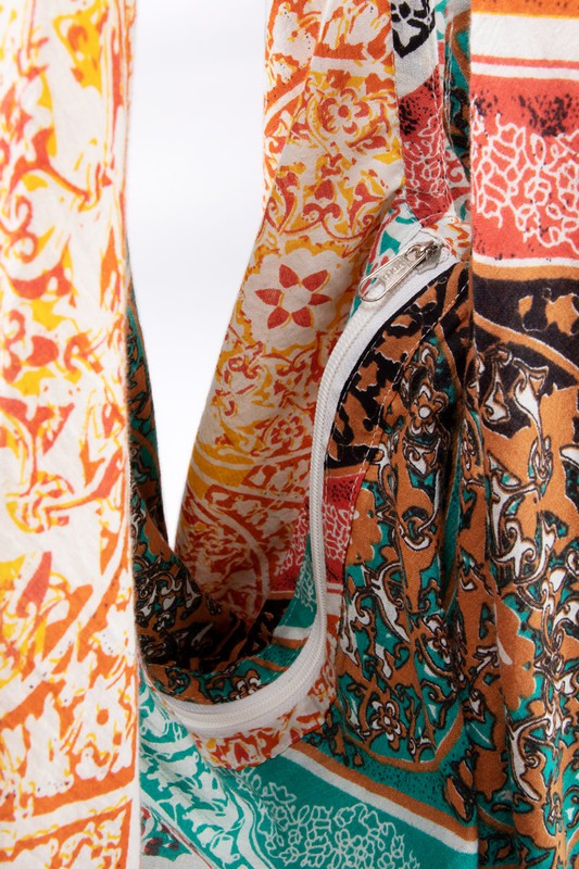 Bohemian and ethnic inspired print fine cotton zipper closure with shoulder straps bag *APPROX. L 16" W 33" HANDLE: 17" *100% Cotton
