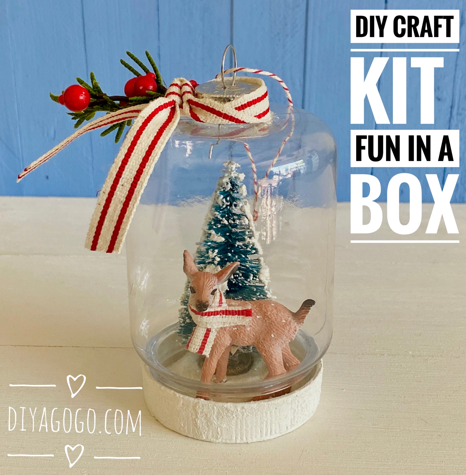 Small kits includes: Globe, 1/2 oz Joint Compound, 1/4 oz of white paint,1 Christmas trees, 1 deer, tiny bag of glass glitter, ribbon, scarf, greenery & berries