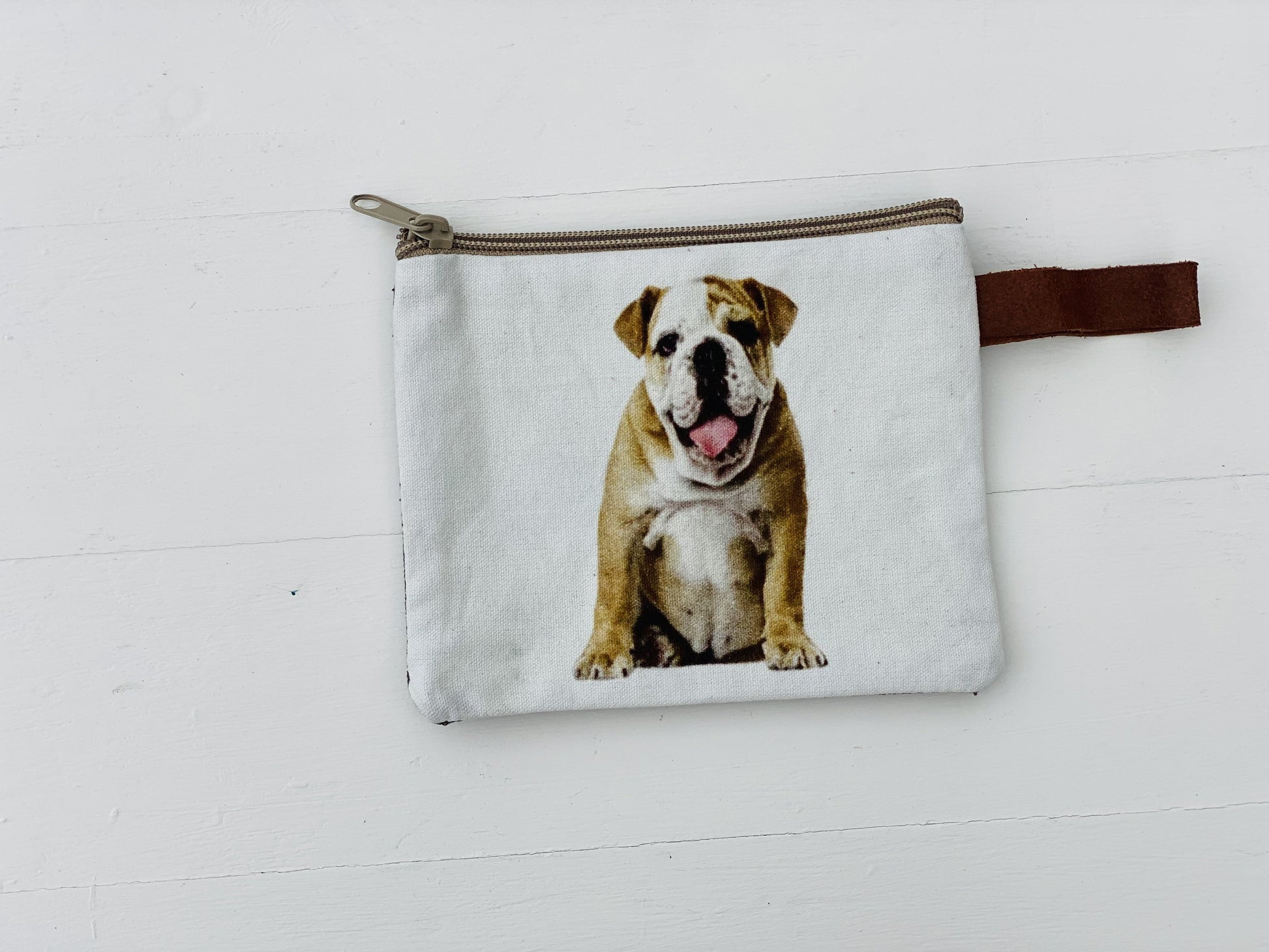 Small dog pouch for tiny items, has a zipper and a small loop on the right end