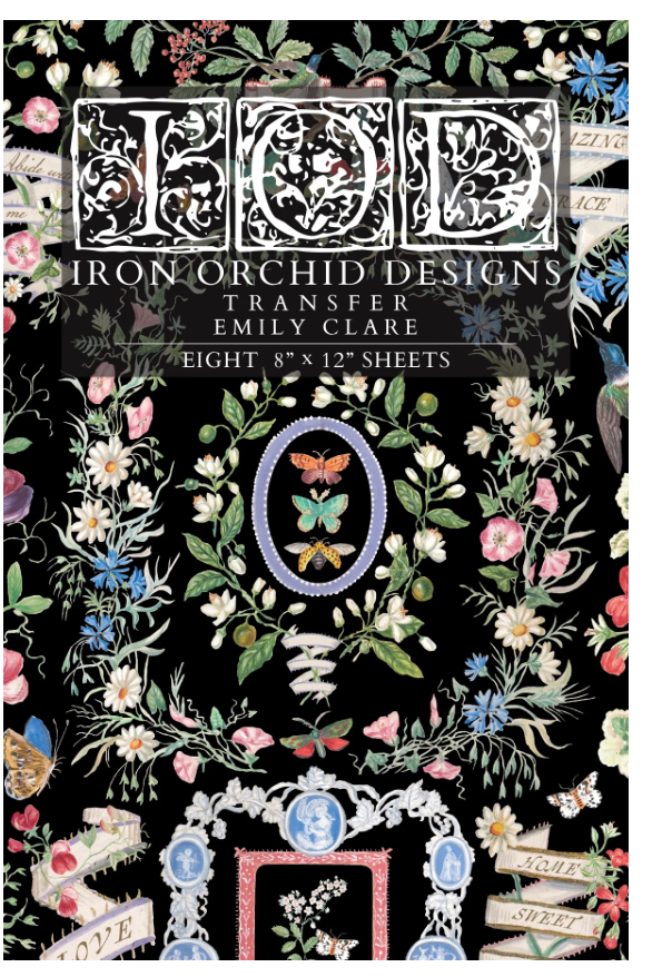The Emily Claire – 8-Page 8x12" Transfer Pad comes from one of our favorite archive finds to date. Taken from an 1868 family album belonging to Miss Emily Clare Harvey, the artwork began as her pencil and watercolor illustrations lovingly added around her family’s portraits. The Cooper Hewitt preserved the album, and when we discovered it, Sam (our Senior Designer) and Sally immediately fell in love with its whimsical, beautifully hand-painted details. The set includes charming elements like kittens, hummingbirds, butterflies, banners, and even a proud little rooster—each one quirky, delicate, and full of character.
