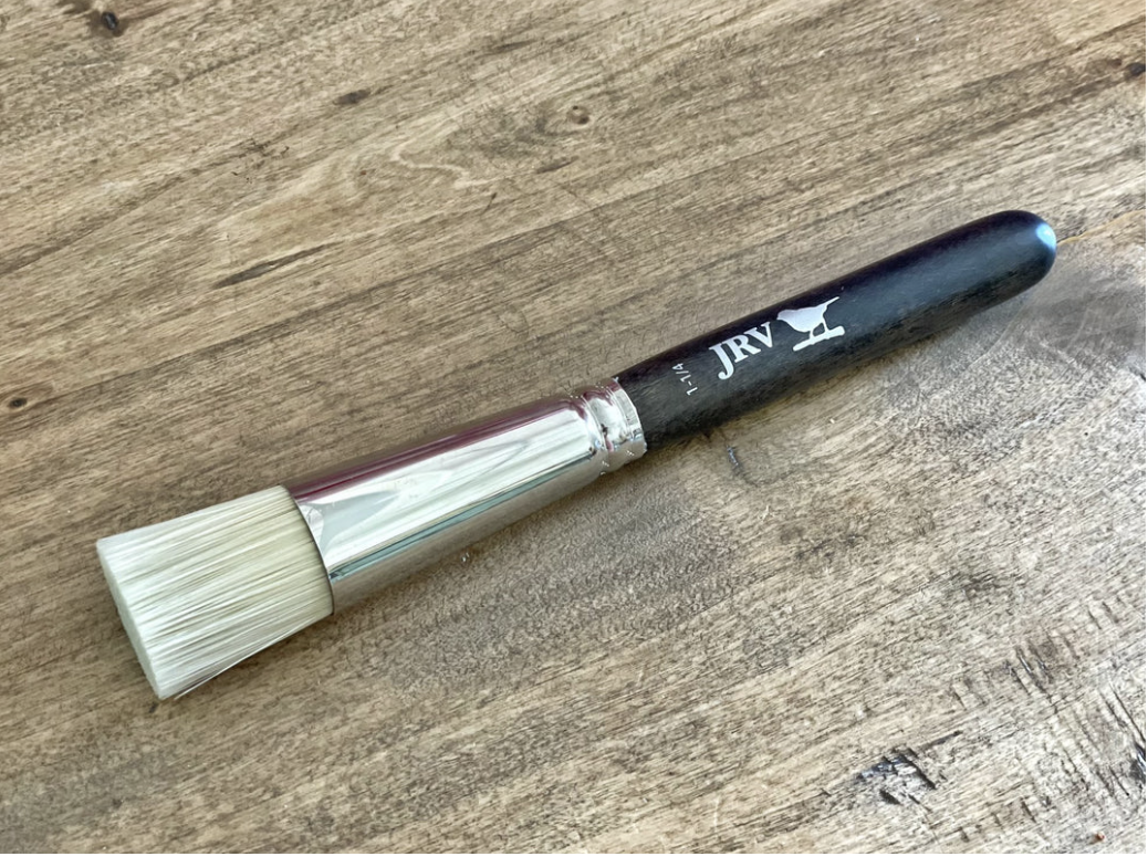 The new USA made JRV Stencil Brushes come in four sizes, . The handles are a dark walnut stain with matte lacquer and a chrome logo. The bristles are synthetic and made to last.
