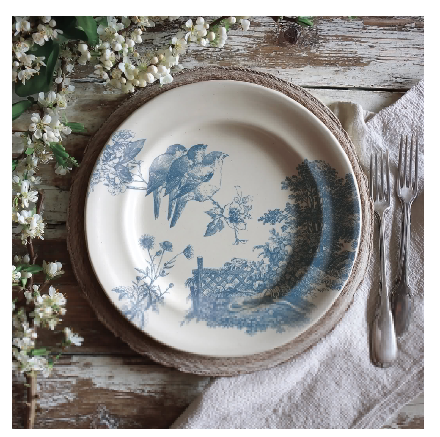Designed as a single, versatile sheet, it includes both background trees and foreground birds so you can create layered compositions with that familiar “birds on a branch” china pattern seen on vintage European dishware. The trees were sourced in the Paris flea markets, and the birds come from an 1800s archive. We picture makers creating their own decorative “plates” for wall displays, or using Meadowlark for cards, mixed media, and art pieces.