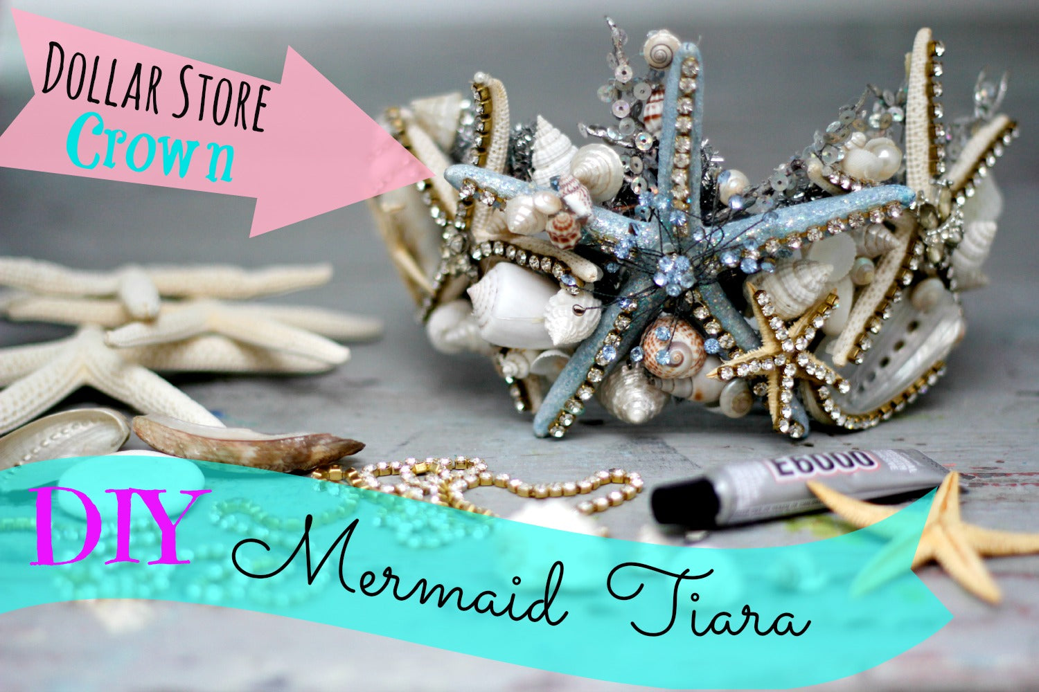 Watch the how to video and make your own Mermaid tiara from a dollar store crown.
