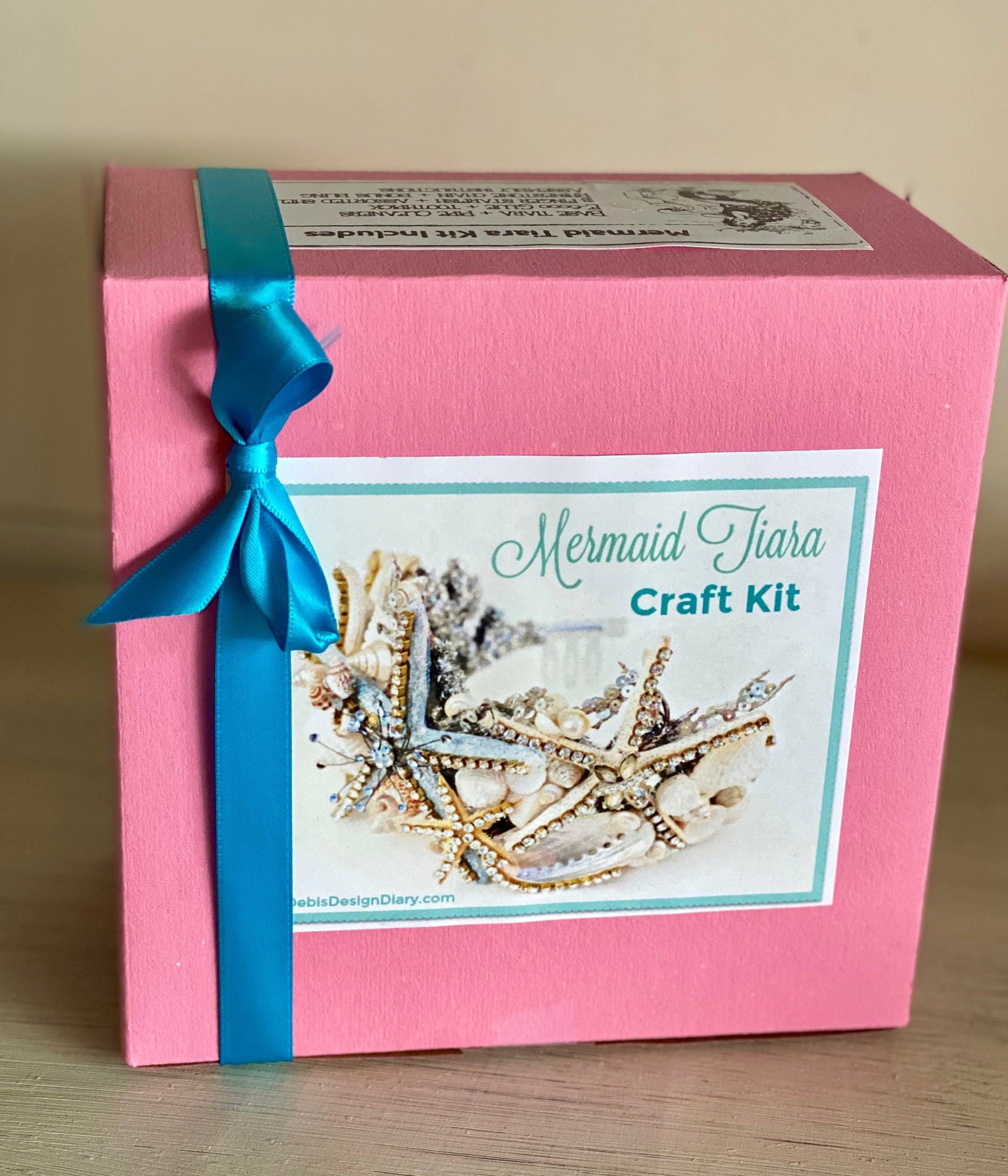 Kit includes- tiara base, pipe cleaners, e-6000 glue, toothpick, 3 sea stars, assorted shells, rhinestone chain, instructions