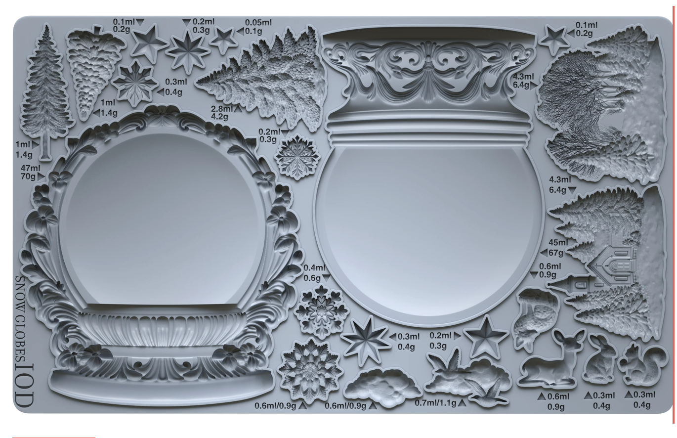Each globe is designed with timeless details, perfect for layering in smaller elements from your favorite holiday transfers or vintage labels from Figgy & Flourish. Place two castings back-to-back for a dimensional ornament, or build a nostalgic winter scene inside the globe for a Christmas keepsake.