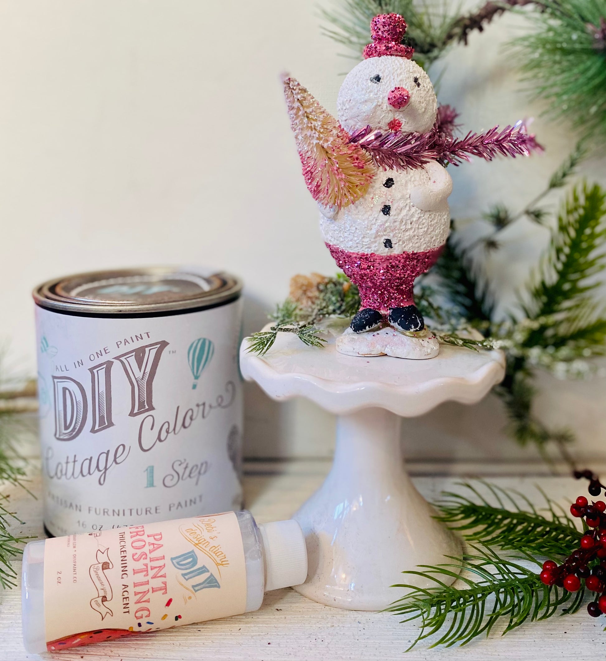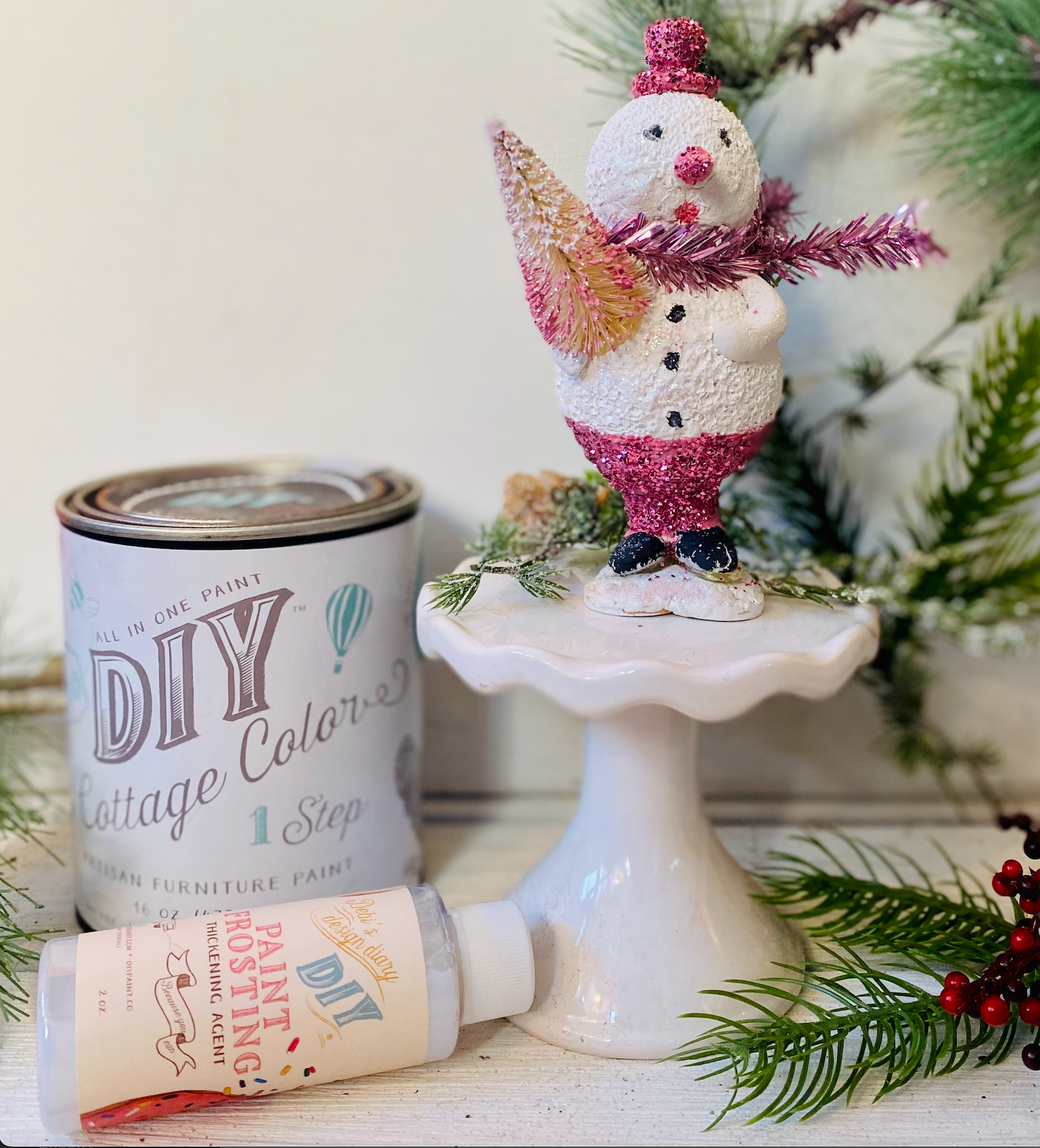 craft size paint, glue air dry clay, paint frosting plus tiny tree, craft sticks, glitter, garland, and base