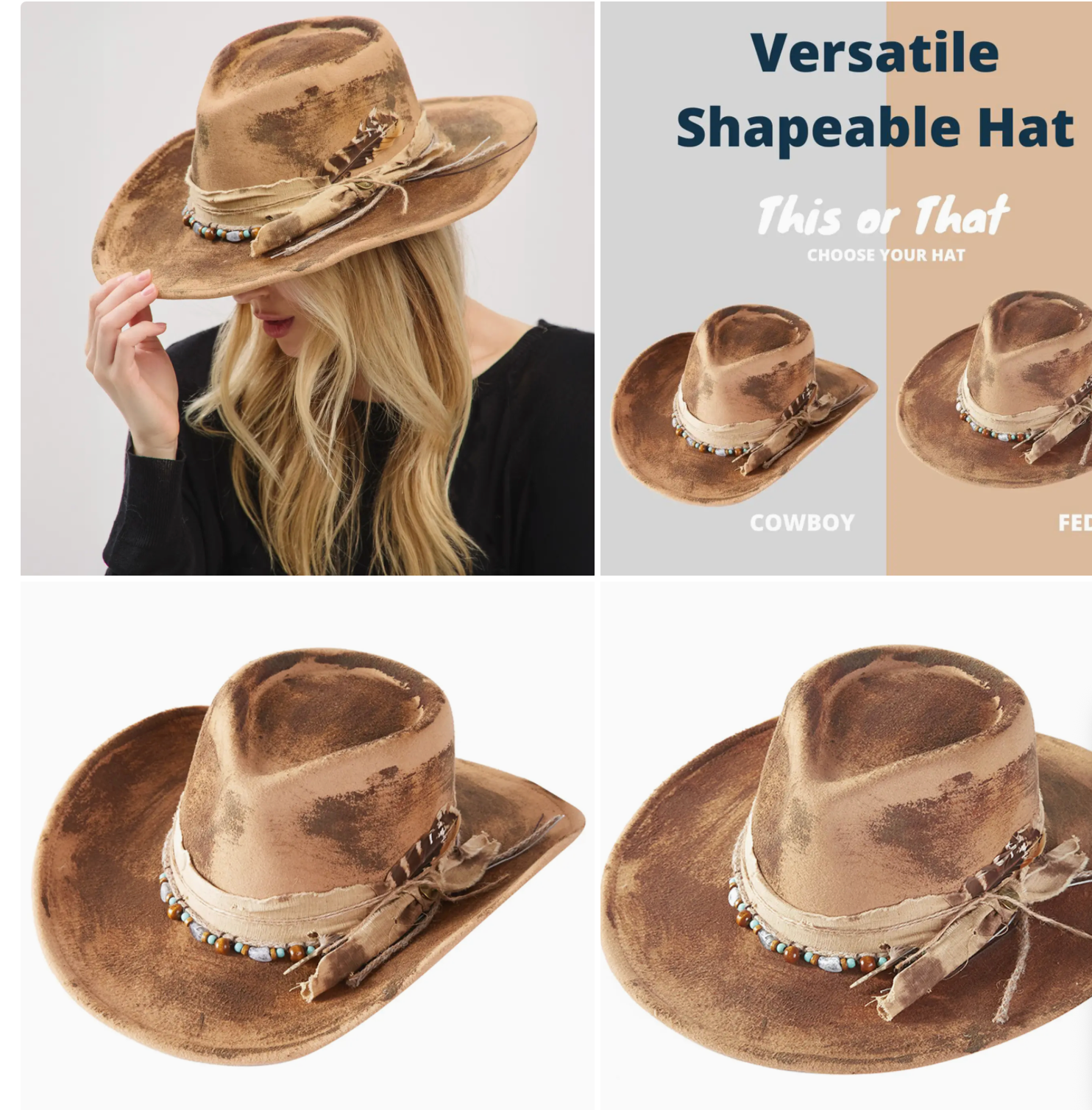 Vintage Feather Accent Distressed Fabric Bow Band