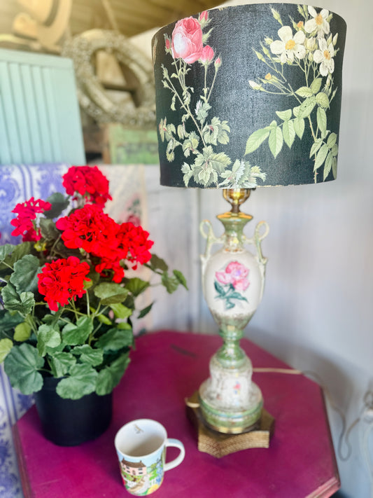 vintage Capodimonte lamp with custom one of a kind lampshade as seen in Debi's video